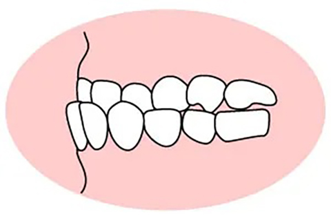 上の前歯が下の前歯に被さっている