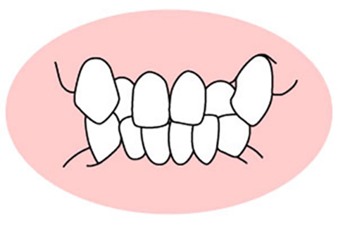 歯が重なりあって凸凹になっている
